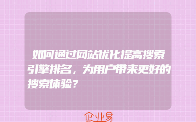- 如何通过网站优化提高搜索引擎排名,为用户带来更好的搜索体验?