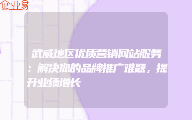 - 武威地区优质营销网站服务:解决您的品牌推广难题,提升业绩增长