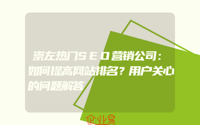 - 崇左热门SEO营销公司:如何提高网站排名?用户关心的问题解答