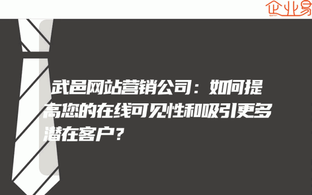 - 武邑网站营销公司:如何提高您的在线可见性和吸引更多潜在客户?