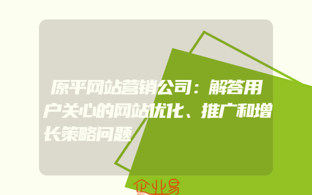 - 原平网站营销公司:解答用户关心的网站优化、推广和增长策略问题