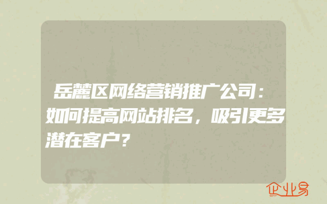- 岳麓区网络营销推广公司:如何提高网站排名,吸引更多潜在客户?
