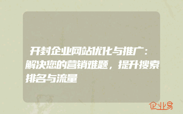 - 开封企业网站优化与推广:解决您的营销难题,提升搜索排名与流量