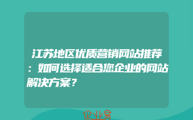 - 江苏地区优质营销网站推荐:如何选择适合您企业的网站解决方案?