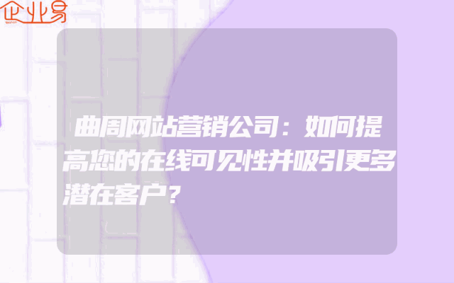- 曲周网站营销公司:如何提高您的在线可见性并吸引更多潜在客户?