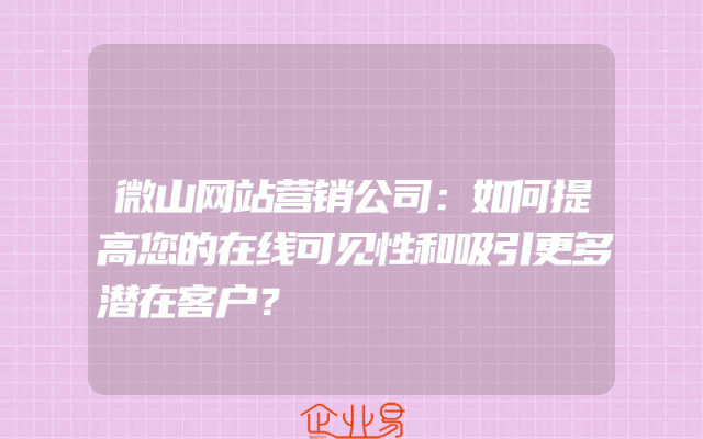 - 微山网站营销公司:如何提高您的在线可见性和吸引更多潜在客户?