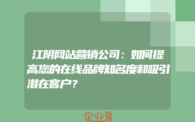 - 江阴网站营销公司:如何提高您的在线品牌知名度和吸引潜在客户?