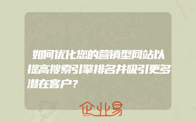 - 如何优化您的营销型网站以提高搜索引擎排名并吸引更多潜在客户?