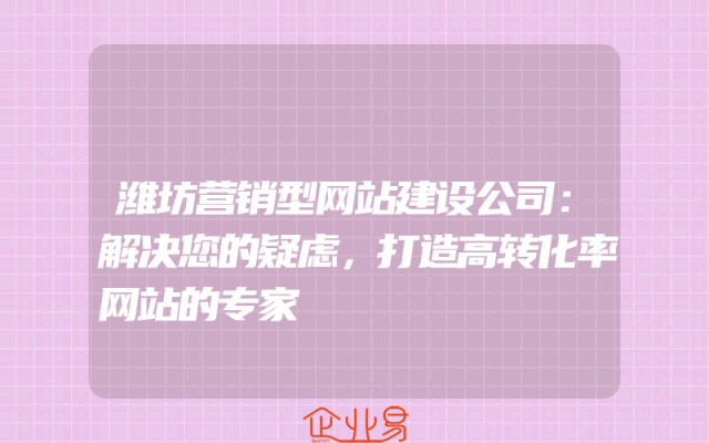 - 潍坊营销型网站建设公司:解决您的疑虑,打造高转化率网站的专家