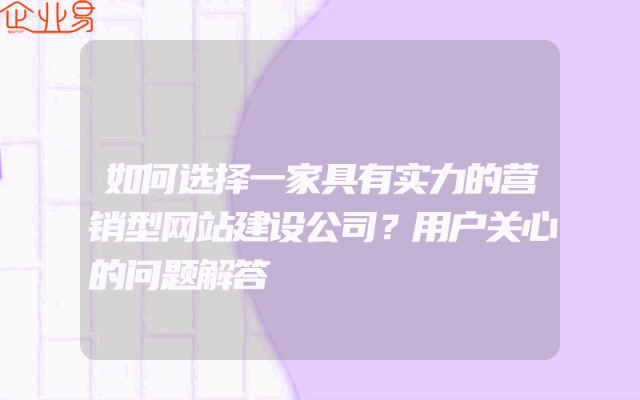 - 如何选择一家具有实力的营销型网站建设公司?用户关心的问题解答