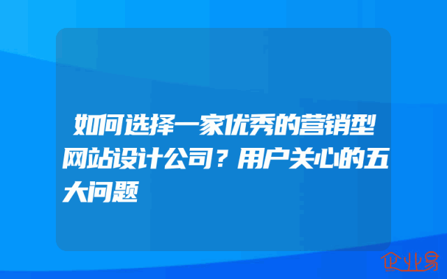 - 如何选择一家优秀的营销型网站设计公司?用户关心的五大问题