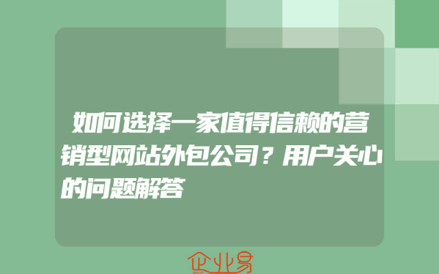 - 如何选择一家值得信赖的营销型网站外包公司?用户关心的问题解答