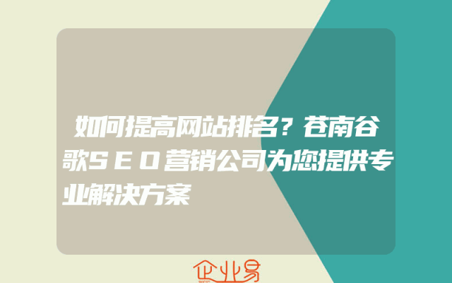 - 如何提高网站排名?苍南谷歌SEO营销公司为您提供专业解决方案
