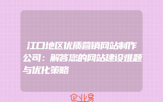 - 江口地区优质营销网站制作公司:解答您的网站建设难题与优化策略