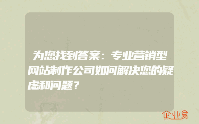 - 为您找到答案:专业营销型网站制作公司如何解决您的疑虑和问题?