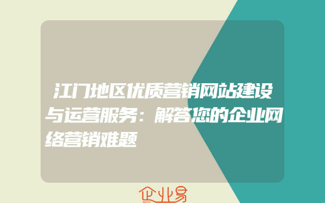- 江门地区优质营销网站建设与运营服务:解答您的企业网络营销难题