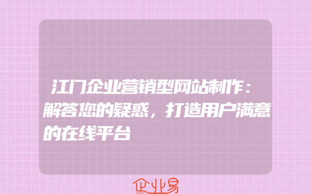 - 江门企业营销型网站制作:解答您的疑惑,打造用户满意的在线平台