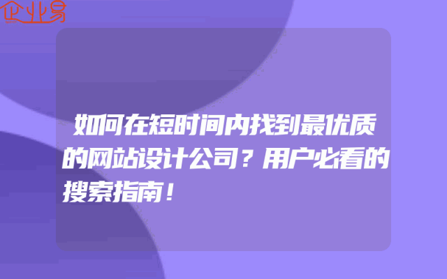 - 如何在短时间内找到最优质的网站设计公司?用户必看的搜索指南!