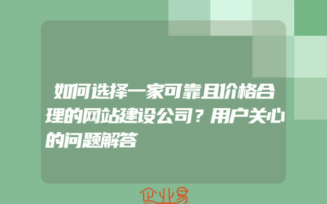 - 如何选择一家可靠且价格合理的网站建设公司?用户关心的问题解答