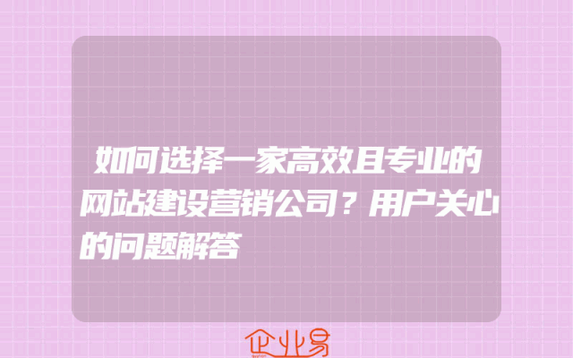 - 如何选择一家高效且专业的网站建设营销公司?用户关心的问题解答