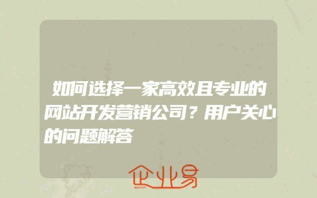 - 如何选择一家高效且专业的网站开发营销公司?用户关心的问题解答