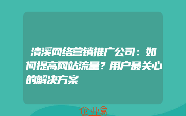 - 清溪网络营销推广公司:如何提高网站流量?用户最关心的解决方案