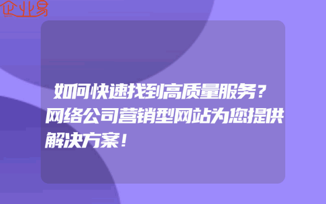 - 如何快速找到高质量服务?网络公司营销型网站为您提供解决方案!