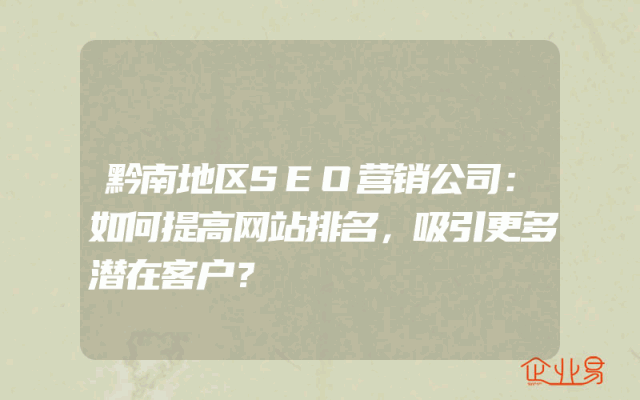 - 黔南地区SEO营销公司:如何提高网站排名,吸引更多潜在客户?