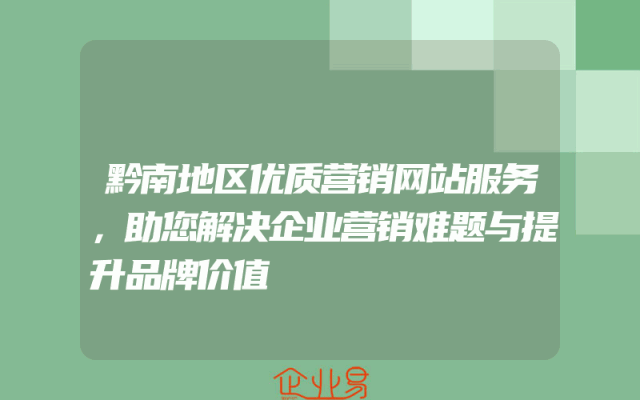 - 黔南地区优质营销网站服务,助您解决企业营销难题与提升品牌价值