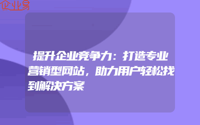- 提升企业竞争力:打造专业营销型网站,助力用户轻松找到解决方案