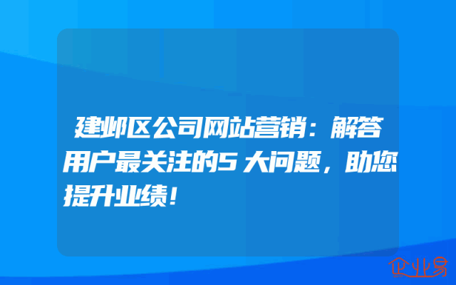 - 建邺区公司网站营销:解答用户最关注的5大问题,助您提升业绩!