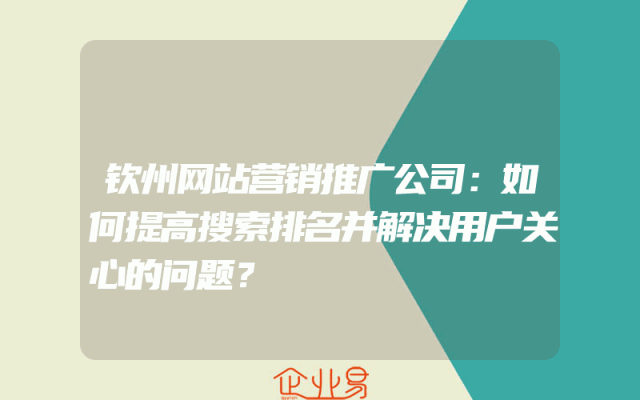 - 钦州网站营销推广公司:如何提高搜索排名并解决用户关心的问题?