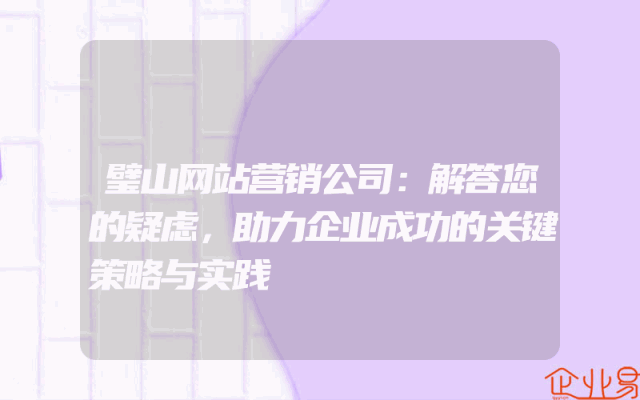 - 璧山网站营销公司:解答您的疑虑,助力企业成功的关键策略与实践