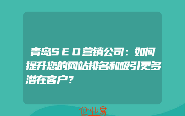 - 青岛SEO营销公司:如何提升您的网站排名和吸引更多潜在客户?