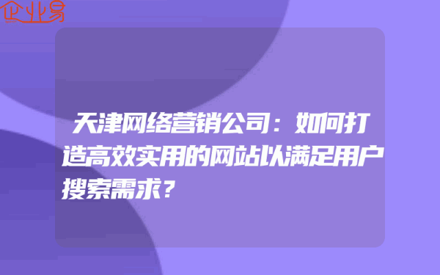 - 天津网络营销公司:如何打造高效实用的网站以满足用户搜索需求?