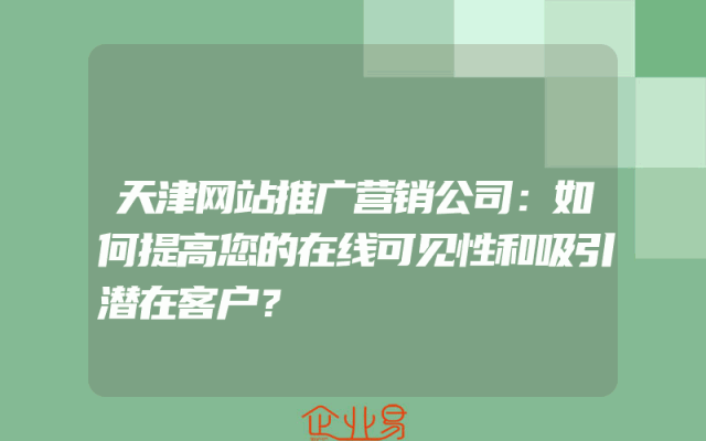 - 天津网站推广营销公司:如何提高您的在线可见性和吸引潜在客户?