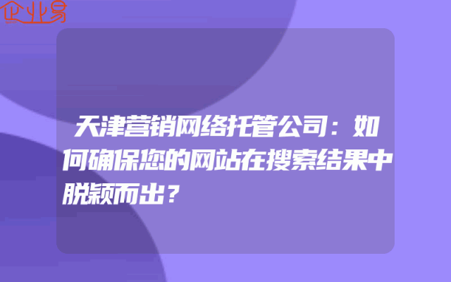 - 天津营销网络托管公司:如何确保您的网站在搜索结果中脱颖而出?