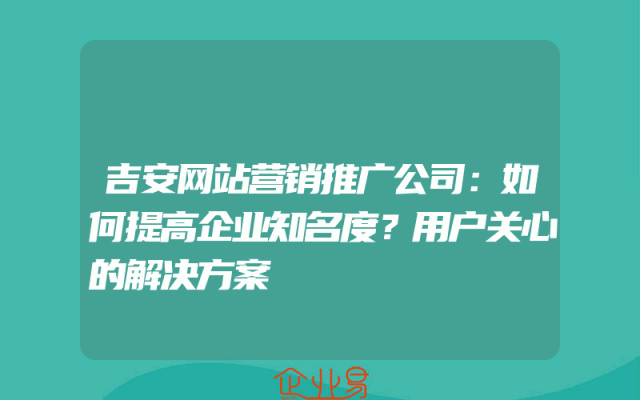 - 吉安网站营销推广公司:如何提高企业知名度?用户关心的解决方案