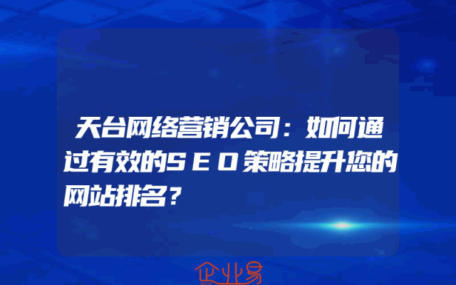 - 天台网络营销公司:如何通过有效的SEO策略提升您的网站排名?