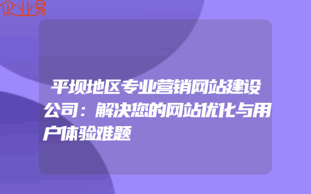 - 平坝地区专业营销网站建设公司:解决您的网站优化与用户体验难题