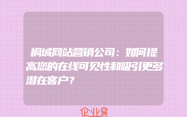 - 桐城网站营销公司:如何提高您的在线可见性和吸引更多潜在客户?