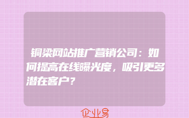 - 铜梁网站推广营销公司:如何提高在线曝光度,吸引更多潜在客户?