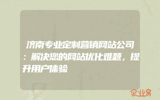 - 济南专业定制营销网站公司:解决您的网站优化难题,提升用户体验