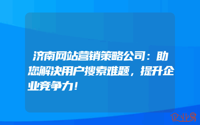 - 济南网站营销策略公司:助您解决用户搜索难题,提升企业竞争力!在当今的数字化时代,企业的竞争已经不再局限于实体市场,而是扩展到了网络世界。随着互联网的普及和发展,越来越多的用户开始通过搜索引擎来寻找他们需要的产品和服务。因此,如何有效地进行网