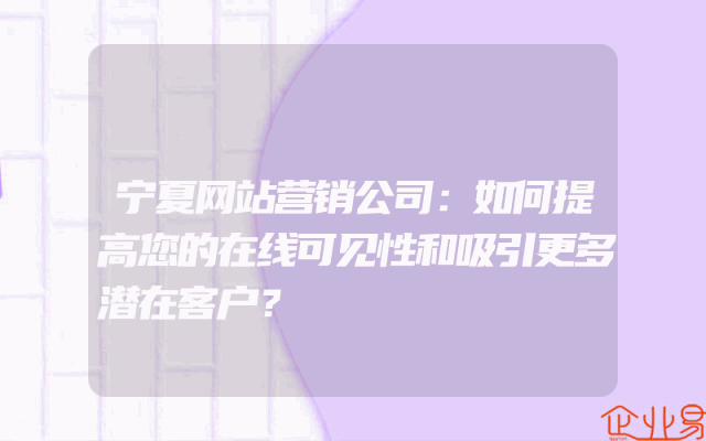 - 宁夏网站营销公司:如何提高您的在线可见性和吸引更多潜在客户?