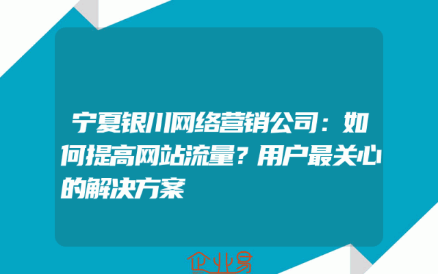 - 宁夏银川网络营销公司:如何提高网站流量?用户最关心的解决方案