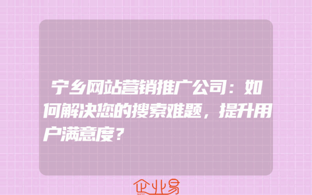 - 宁乡网站营销推广公司:如何解决您的搜索难题,提升用户满意度?