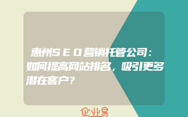 - 惠州SEO营销托管公司:如何提高网站排名,吸引更多潜在客户?