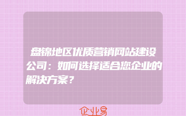 - 盘锦地区优质营销网站建设公司:如何选择适合您企业的解决方案?