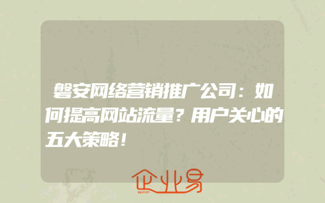- 磐安网络营销推广公司:如何提高网站流量?用户关心的五大策略!
